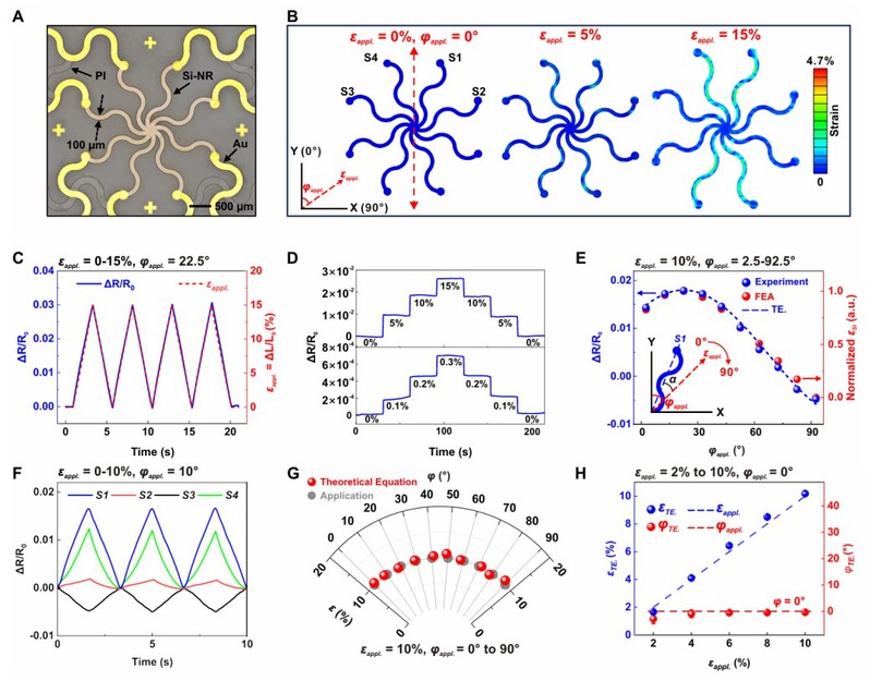 1. 用于软组织生物力学监测的基于硅纳米条带的超薄全向应变传感器