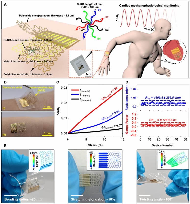3. 生物可降解、可拉伸和生物兼容的硅纳米条带全向应变传感器