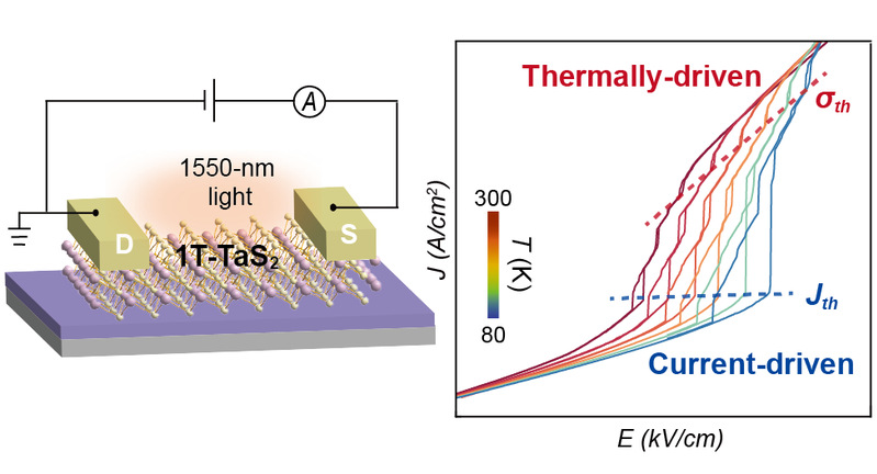 二维层状范德华材料1T-TaS₂ 因其丰富的量子现象而吸引了广泛的研究兴趣,包括超导、莫特绝缘体、平带电子结构以及电荷密度波序等。其中1T-TaS2中的电荷密度波的相变行为可以通过外部微扰,如偏置电场、栅压、光脉冲以及电荷掺杂等进行调控,使得1T-TaS2在宽光谱红外至太赫兹波段光电探测应用中展现出巨大潜力。然而1T-TaS2中电场导致的电荷密度波相变机制却长期存在争议,为相应光电子器件设计及性能优化带来了挑战。